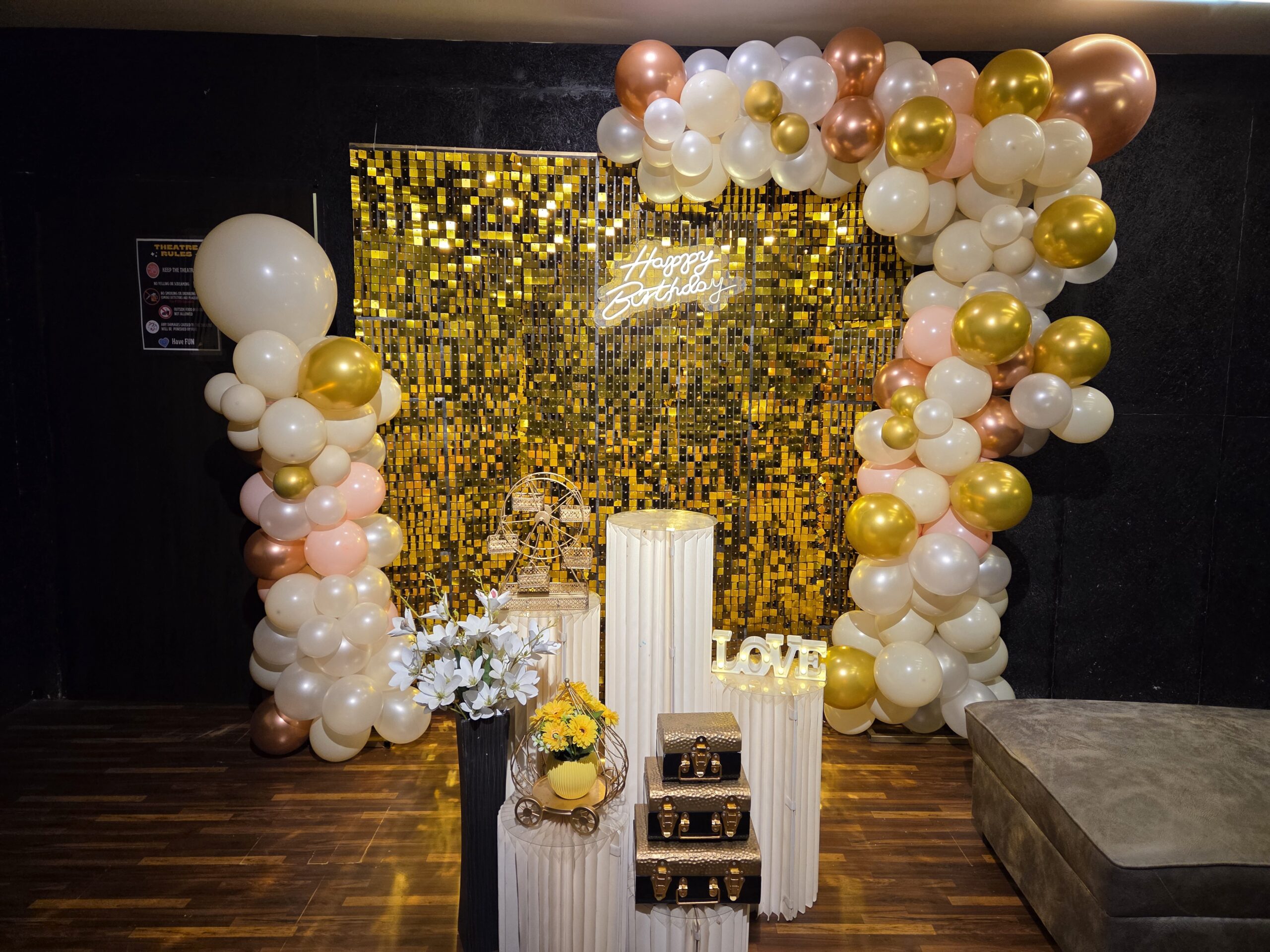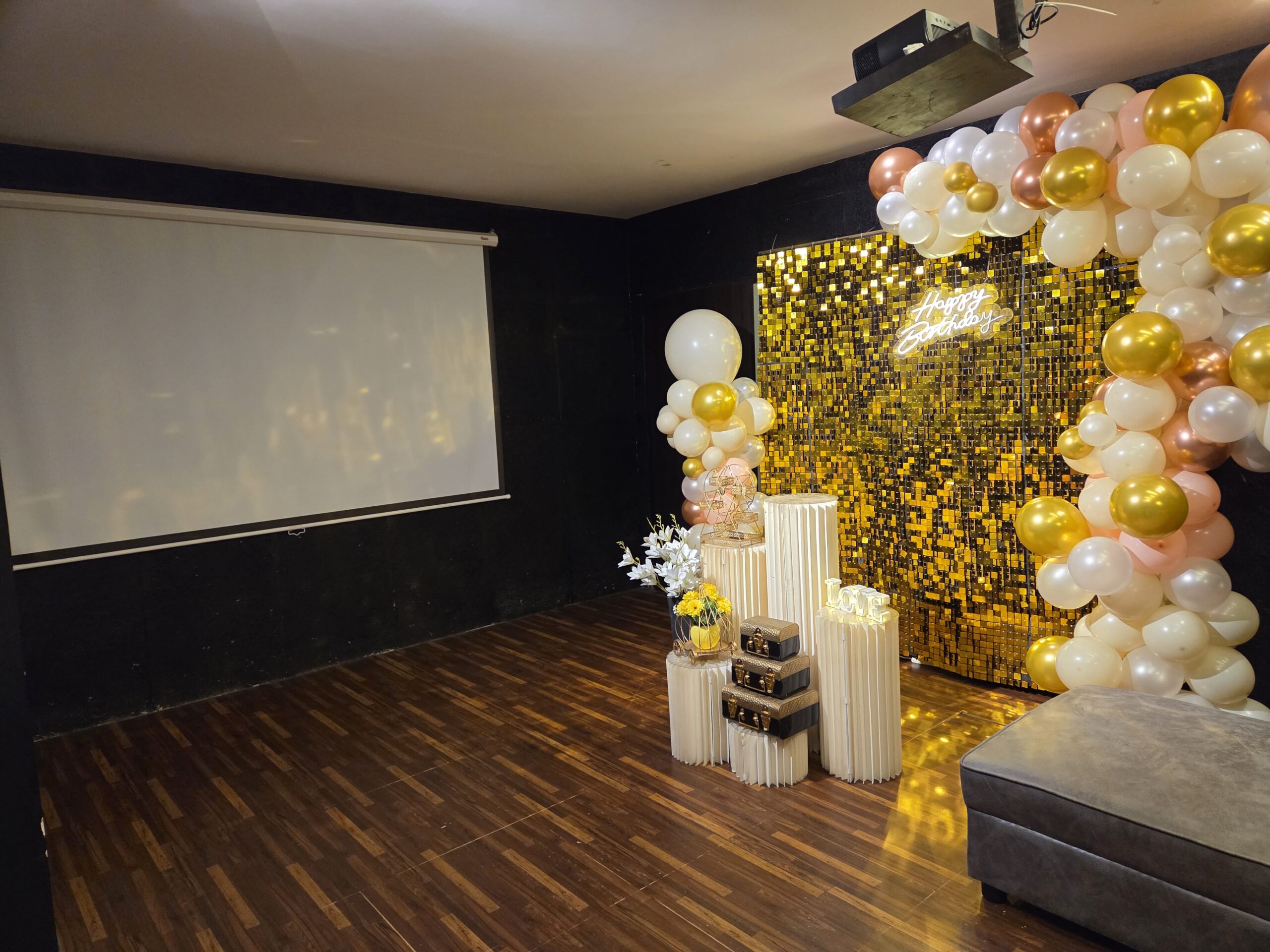 Step into our spacious mini group theatre with your group of 5-7 and celebrate birthdays, bridal showers, and more in grand style. Experience the magic of our stunning screen and top-notch audio system, immersing yourselves in every scene with unparalleled clarity. Sink into our plush, comfortable seats as you create unforgettable memories surrounded by loved ones. From the laughter to the heartfelt moments, every second is elevated by the cinematic ambiance. Let us be the backdrop for your special occasions, where joy fills the air and celebrations come to life -140 inch Screen – Great Decor – Dolby Audio – Delicious Snacks available –